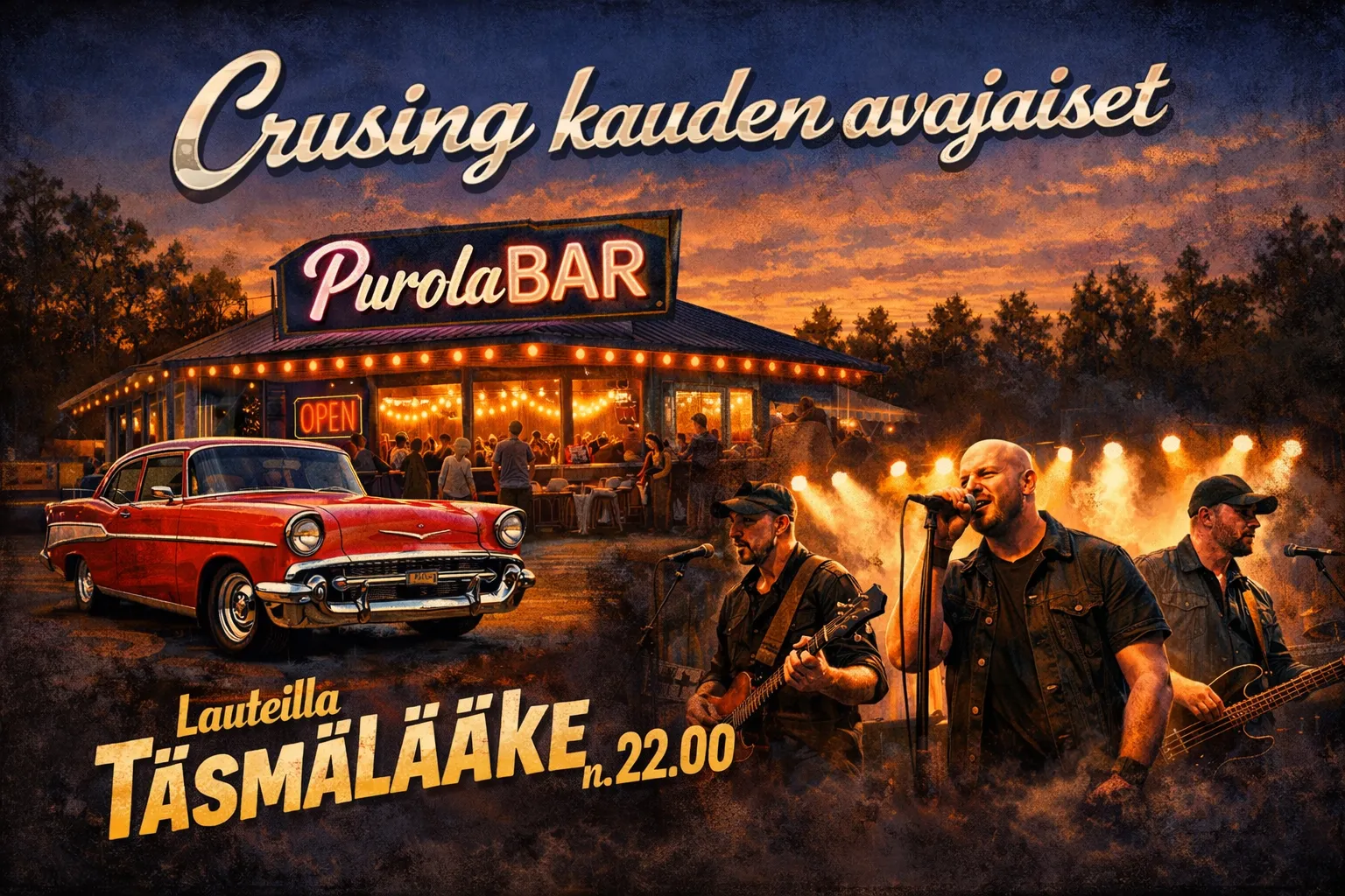 Crusing kauden avajaiset, Lauteilla Täsmälääke n. 22.00
